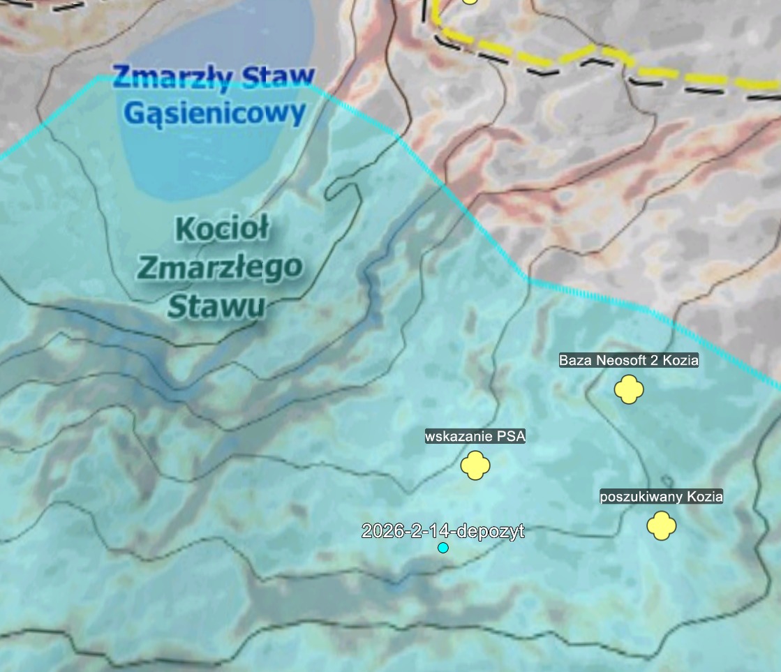 W teren wyruszyło kilka grup ratowników. Szczególną uwagę poświęcono na przeszukanie lawiniska w Koziej Dolince, gdzie o godzinie 13:33 za pomocą systemu NEOSOFT natrafiono na sygnał telefonu komórkowego poszukiwanego. Sygnał został potwierdzony przez detektor RECCO w miejscu, gdzie na głębokości 2,70 m. znajdował się poszukiwany turysta. Po odkopaniu lekarz TOPR stwierdził zgon. Ratownikom pozostał smutny obowiązek transportu ciała na Brzeziny, gdzie przekazano je policji.