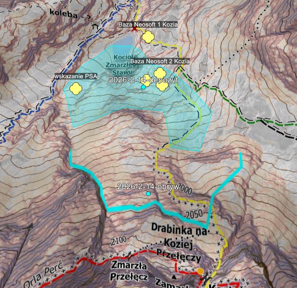 Należy na bieżąco monitorować warunki w terenie i podejmować decyzje o trasie podejścia/zejścia.